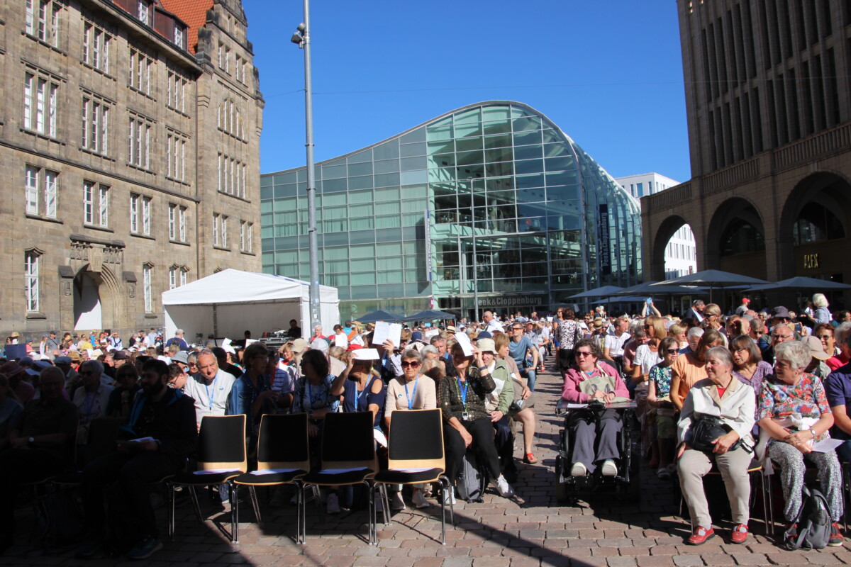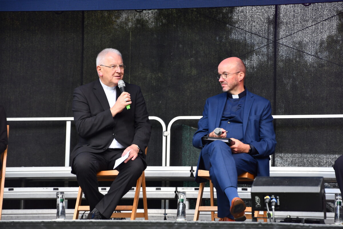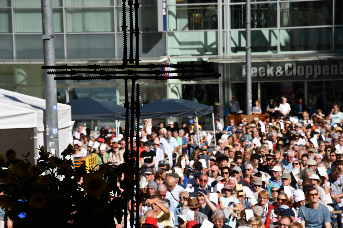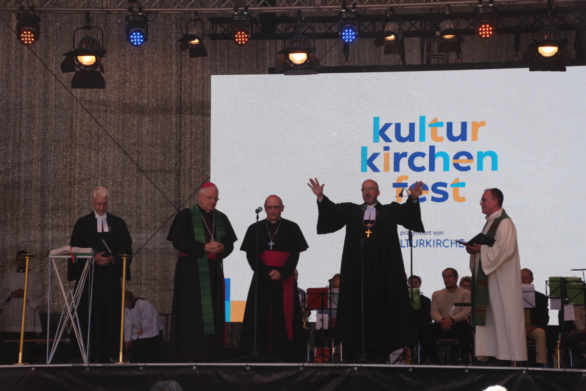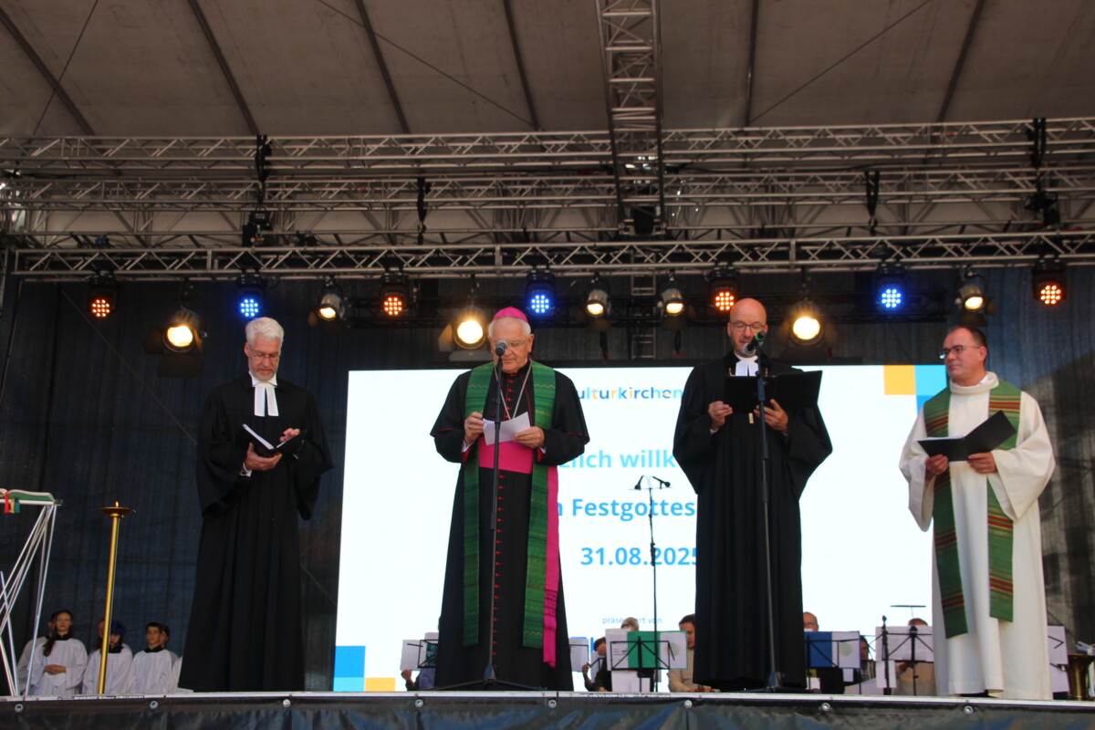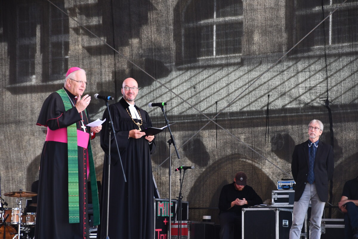 Auch die beiden Bischöfe Tobias Bilz und Heinrich Timmerevers zeigten sich beim Abschlussgottesdienst dankbar und positiv erstaunt über die bisherige Zeit im Kulturhauptstadtjahr. „Hätten Sie vor zwei Jahren gedacht, dass wir heute als Kirche mal so ein großes Fest mitten in der Chemnitzer Innenstadt feiern – also ich nicht“, sagte Timmerevers. Und Bilz erinnerte an den Auftrag der Kirche, den Menschen etwas weiterzugeben von Gottes Liebe: „Wir haben auszuteilen, nicht in erster Linie für uns selbst zu sorgen“.