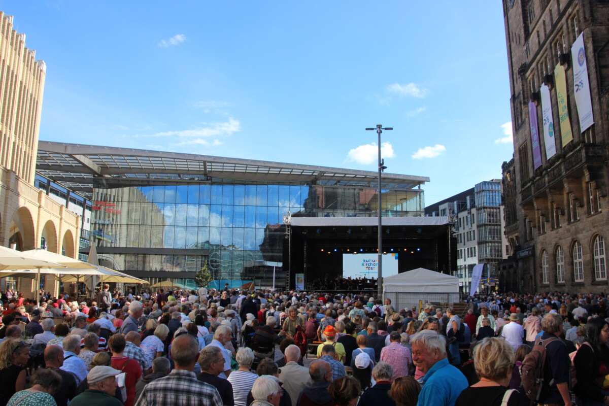 Ein unvergesslicher Höhepunkt war das gemeinsame Singen von rund 1.500 Chorsängerinnen und -sängern auf dem Marktplatz, begleitet von der Elblandphilharmonie Sachsen, im Rahmen des Chorfestivals. Dieses Erlebnis hat nicht nur die Teilnehmenden, sondern auch die vielen Zuhörerinnen und Zuhörer auf dem Platz bewegt. In diesem Moment war spürbar: Glaube funktioniert – auch in einer Stadt, die lange als atheistisch geprägt galt. Musik und Glauben haben Menschen in einer Weise zusammengeführt, die über Worte hinausgeht.